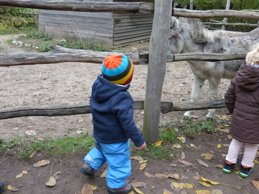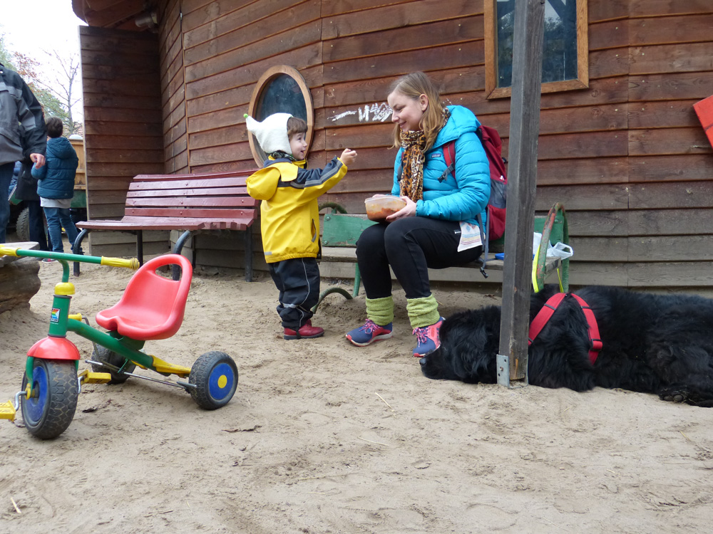 Die Schattenseite des guten Wetters – halb Berlin hatte die Gelegenheit bei diesem schönen Sonntagsherbstwetter zum Ausflug genutzt, und dementsprechend voll war das kleine Gelände. Aber davon ließen die Kinder ihre Stimmung nicht trüben: Schnell fand jeder seine Nische…