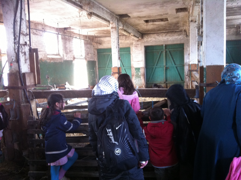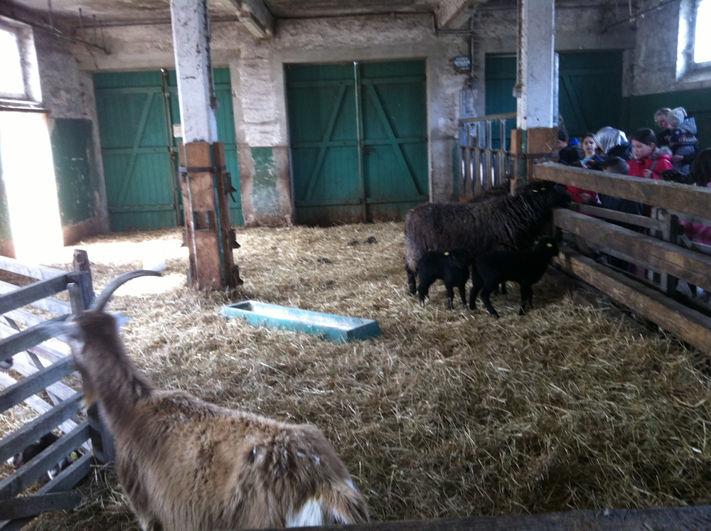 Dort angekommen erkundeten wir das Gelände der Domäne. Wir entdeckten alle Tiere, die auf einem Bauernhof zu Hause sind. Schweine, Hühner, Kühe, Pferde, Ziegen und auch Schafe. Gegen Mittag machten einige Familien ein Picknick und die Kinder spielten Fangen auf der Wiese, während einige Andere die Sonne bei einem Spaziergang auskosteten. Anschließend trafen wir uns alle am Eingang wieder um an einer kleinen Führung „Besuch bei den Schafen“ teilzunehmen. Alle Kinder waren ganz aufgeregt und fragten ungeduldig, was nun passiert.