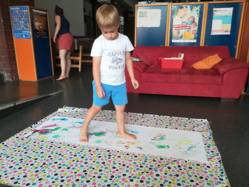 Neben den Parcours haben die Kinder mit den Füßen gemalt und sind von der Rampe mit dem Bobby Car gesaust. Die Eltern konnten mitspielen, sich austauschen und auch einfach nur mal in Ruhe einen Kaffee genießen.
