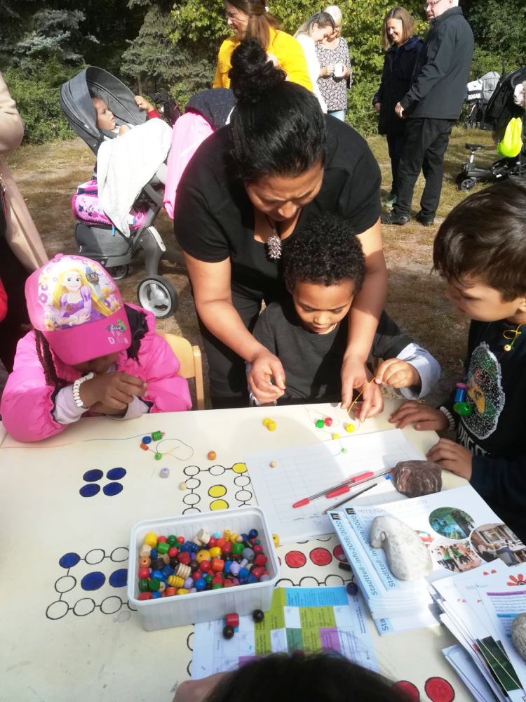 Die Kinder konnten an unserem Stand Ketten aus Holzperlen auffädeln, was Ihnen viel Spaß gemacht hat. Es war sehr schön, auch Kinder und Eltern zu treffen, die früher mal im Familienzentrum ein- uns aus gegangen sind. Wir kamen gut mit Eltern ins Gespräch und haben ihnen vom Familienzentrum erzählt, das tatsächlich einige noch nicht kannten.