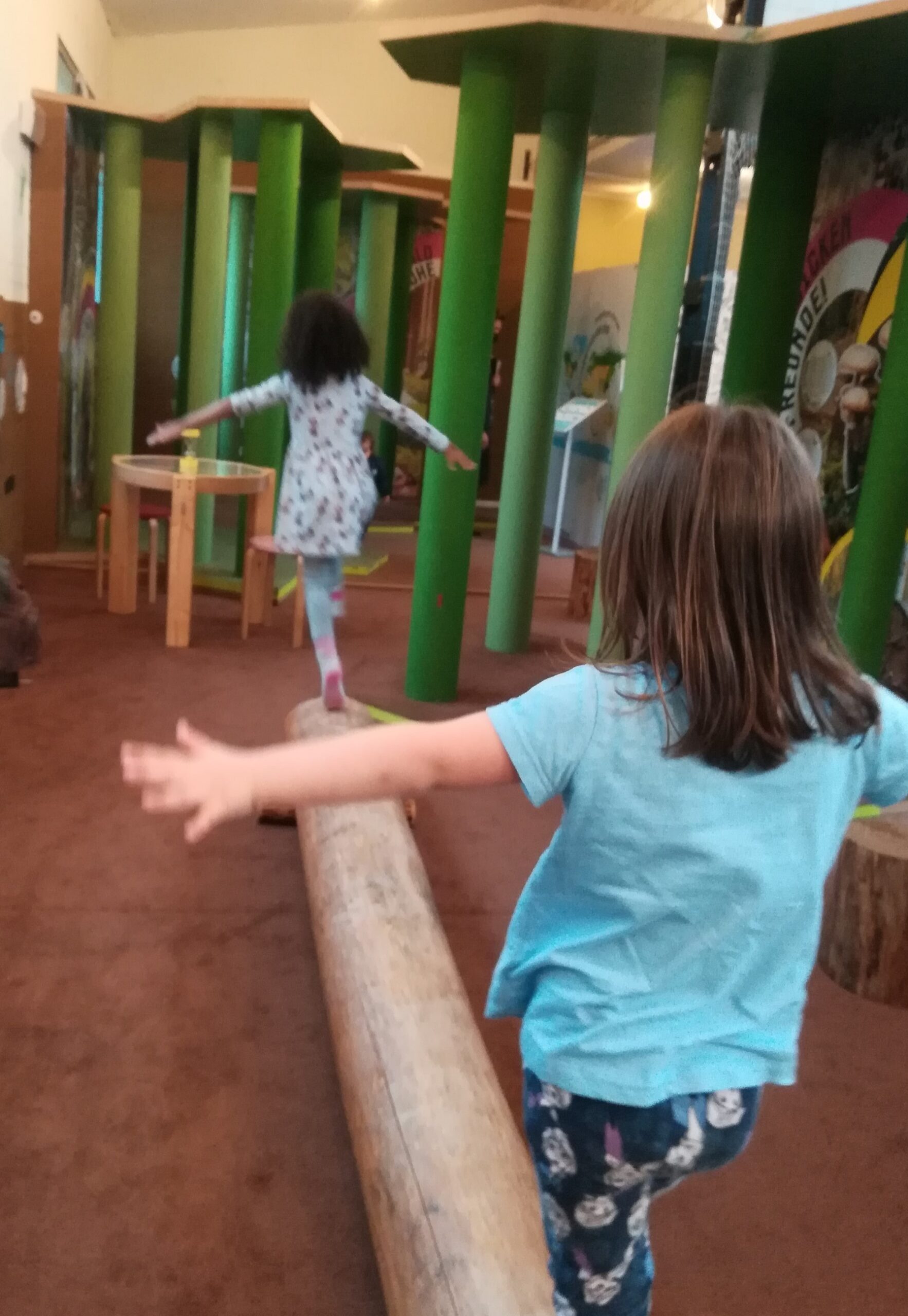 Die Kinder beteiligten sich begeistert an den Mitmachmöglichkeiten der Ausstellung. Einige balancierten auf einem Baumstamm, andere malten oder bastelten, einige bauten mit Lego und andere sahen sich einen Film an.