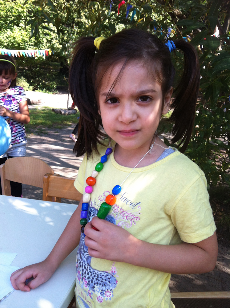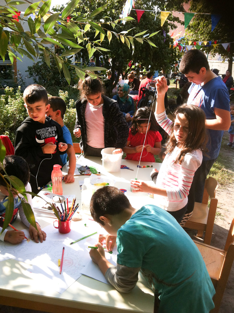 Während die Eltern sich über die Angebote des Familienzentrums informierten, haben die Kinder gemalt und Ketten selbst gemacht. Alle hatten viel Spaß und waren konzentriert bei der „Arbeit“.
