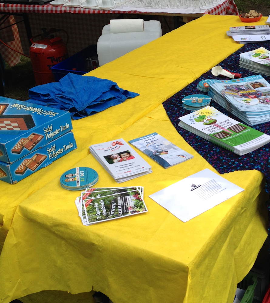 Das QuartiersManagement Moabit Ost und die fantastischen Leute von LocalSmarts bieten in Verbindung mit verschiedenen Kooperationspartnern sonntags noch bis zu den Sommerferien tolle Aktivitäten im Park nahe der Minigolfanlage an. Dieses tolle Kooperationsprojekt nennt sich “PARKGESCHMACK“ und wir – das Familienzentrum Moabit Ost – waren diesen Sonntag mit Spiel, Spaß und guter Laune dabei.