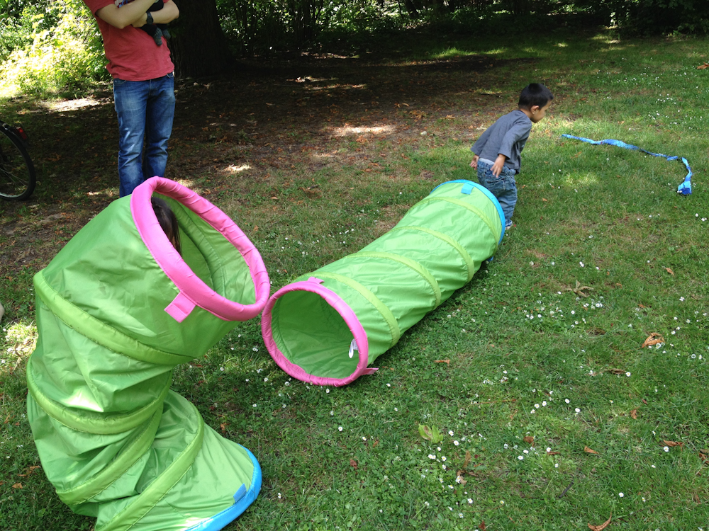 Pünktlich um 13:00 Uhr verzogen sich die letzten Wölkchen und die Sonne strahlte am Himmel. Einfach perfekt für einen Spielenachmittag im Grünen mit der Familie.