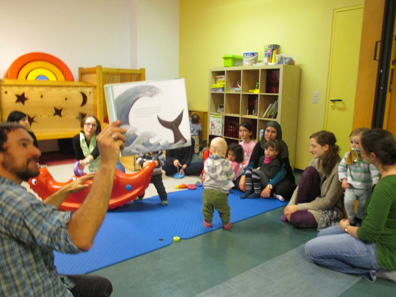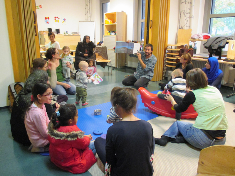 Die Mütter, die Arabisch und Türkisch können, haben sie den Kindern in der jeweiligen Sprache vorgelesen. Es waren zahlreiche Eltern mit ihren Kindern da, und alle haben das Vorlesen bei Kakao und Kaffee (für die Eltern) sehr genossen. Es war eine sehr schöne und vor allem gemütliche Atmosphäre!