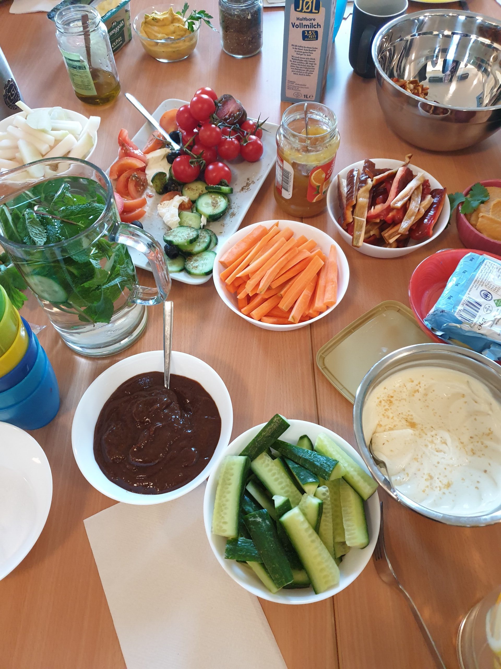 Gemeinsam wurden verschiedene Rezepte ausprobiert und leckere Brotaufstriche und Dips hergestellt.