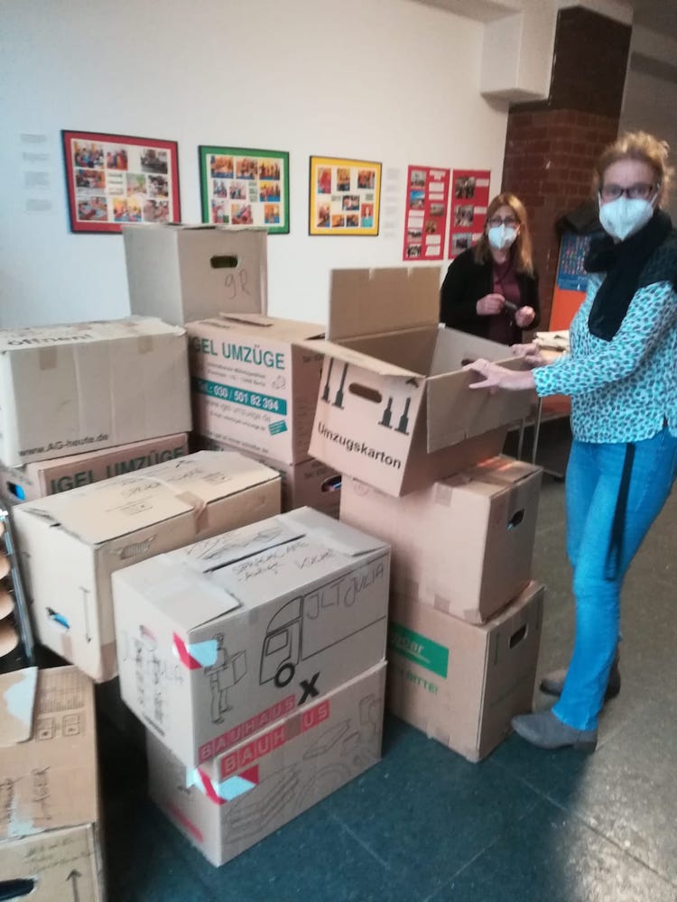 Da das Zillehaus ab Januar 2021 umgebaut wird, ziehen wir übergangsweise in die Staphanstraße 43, direkt hinter dem Moa-Bogen in Moabit-Ost. Nachdem wir Anfang Januar das gesamte Spielzeug in Kisten verpackt haben, konnten wir es mit einem Umzugswagen in unsere neuen Räume bringen. Wir alle haben mit angepackt und sind dabei ein wenig ins Schwitzen gekommen.