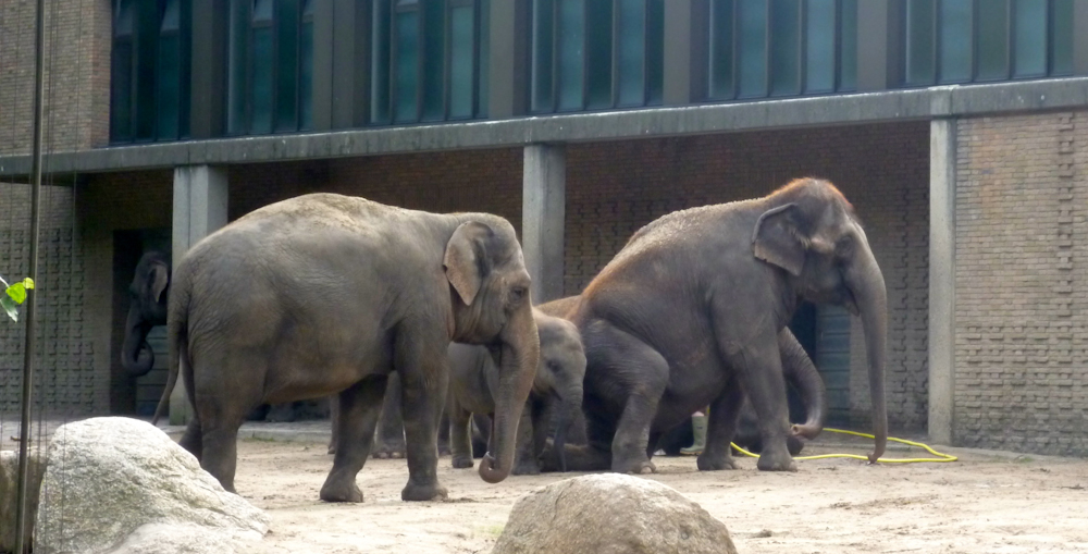 Aber auch die großen Tiere, wie Löwen, Tiger, Giraffen und Zebras konnte man beobachten. Zum Abschluss durften wir sogar noch miterleben, wie eine Elefantenfamilie sich in einer Reihe aufstellte, um vom Zoopfleger eine kühle Dusche zu bekommen.