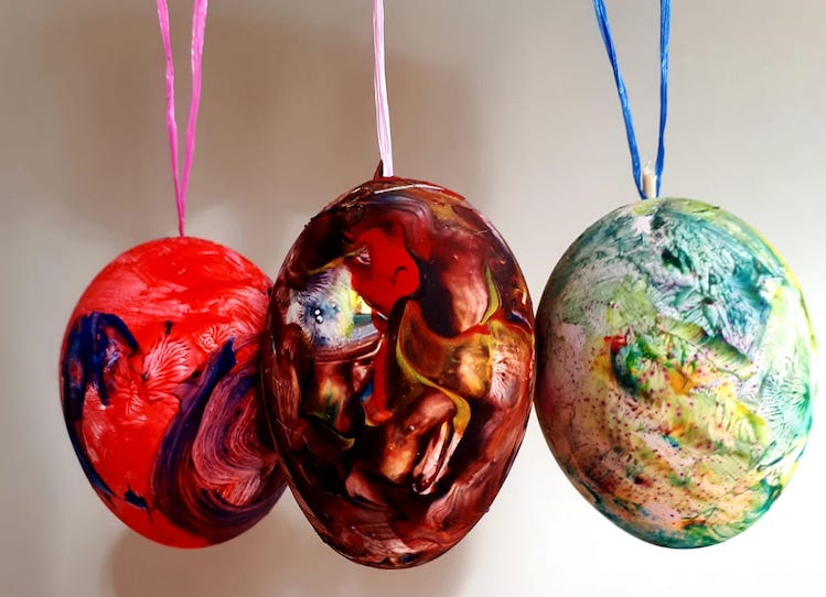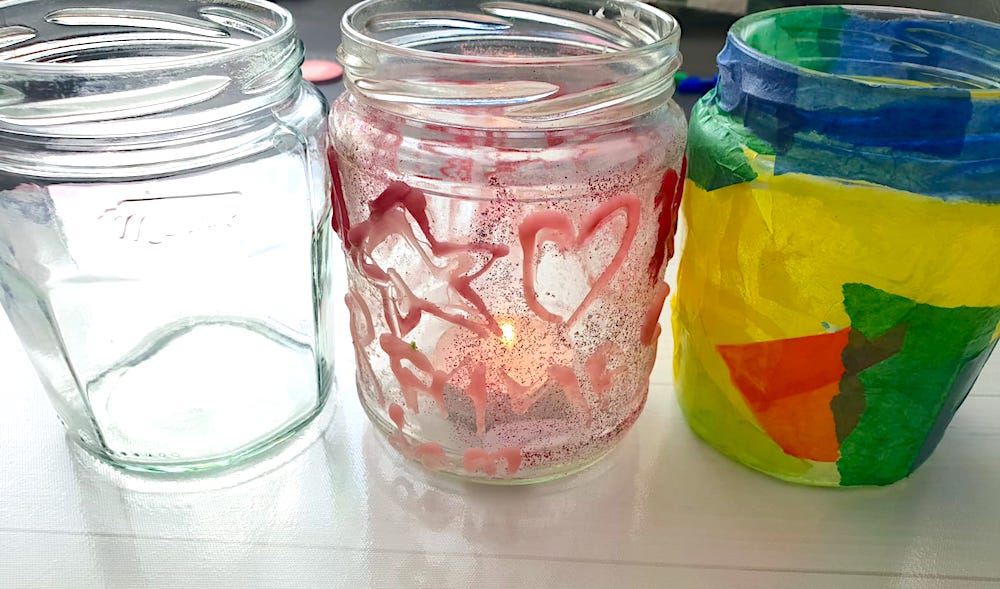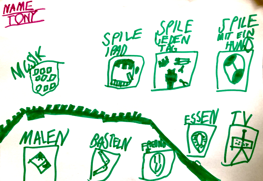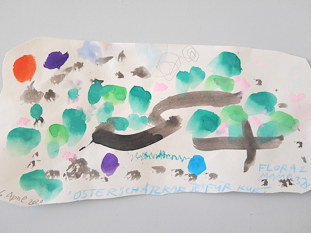 An Werktagen legen wir dort mehrmals am Tag etwas zum Malen oder zum Spielen hin.