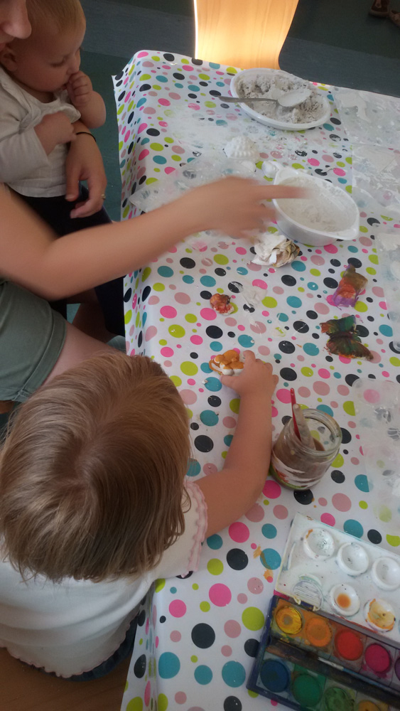Laura stellte gemeinsam mit den anwesenden Kindern und Eltern Tiere aus Gips her. Im Anschluss wurden diese fröhlich und bunt bemalt. Nebenbei wurden Kekse gegessen und Tee getrunken. Anbei ein paar Impressionen für Euch!